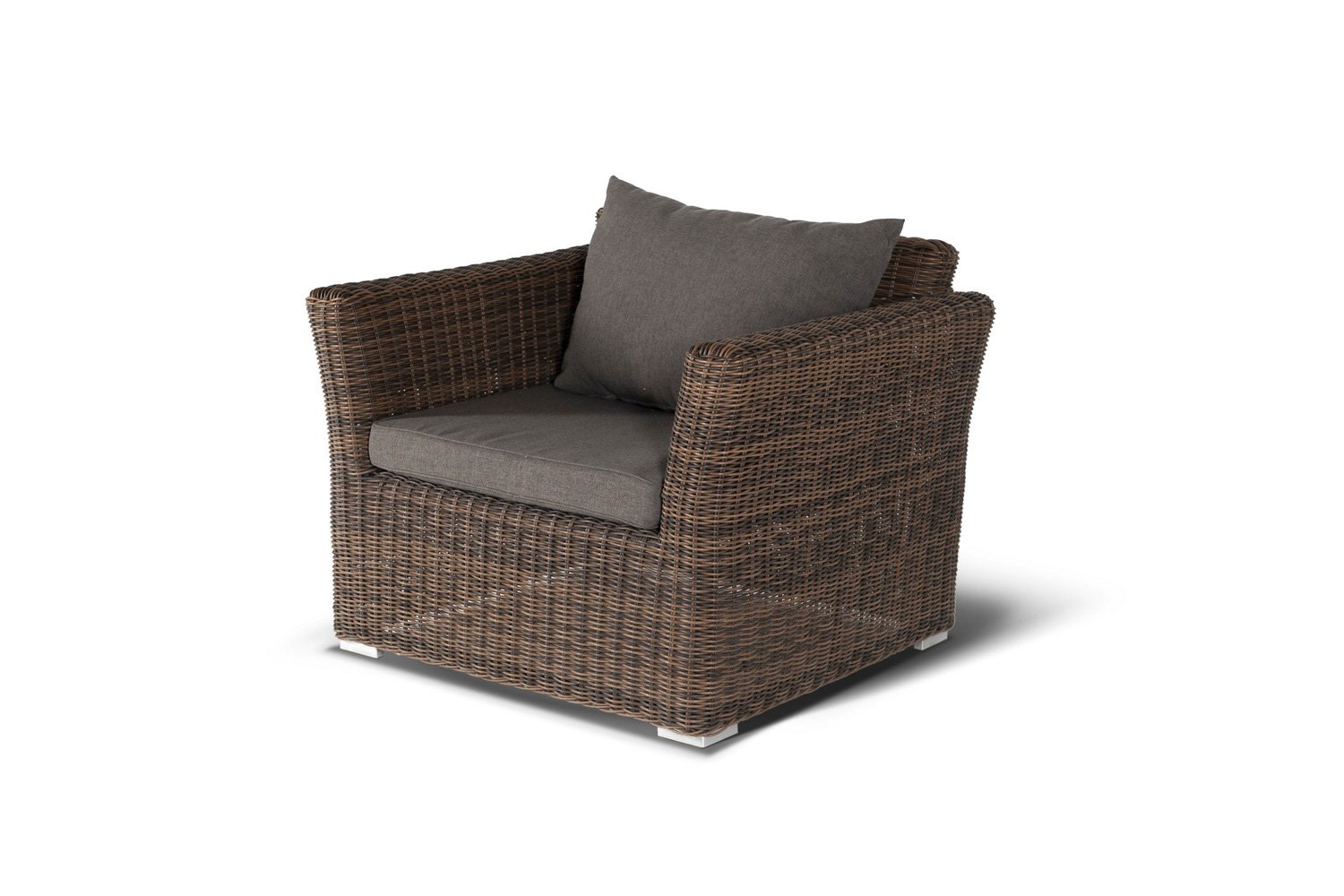 Кресло от 4sis из коллекции Капучино станет прекрасным дополнением к уже имеющемуся комплекту мебели в том же стиле, либо может выступить самостоятельным элементом меблировки как на природе, так и дома, возле бассейна или на закрытых верандах. Его форма почти квадратная, с подлокотниками, незначительно наклоненными в стороны, и широкими стенками.