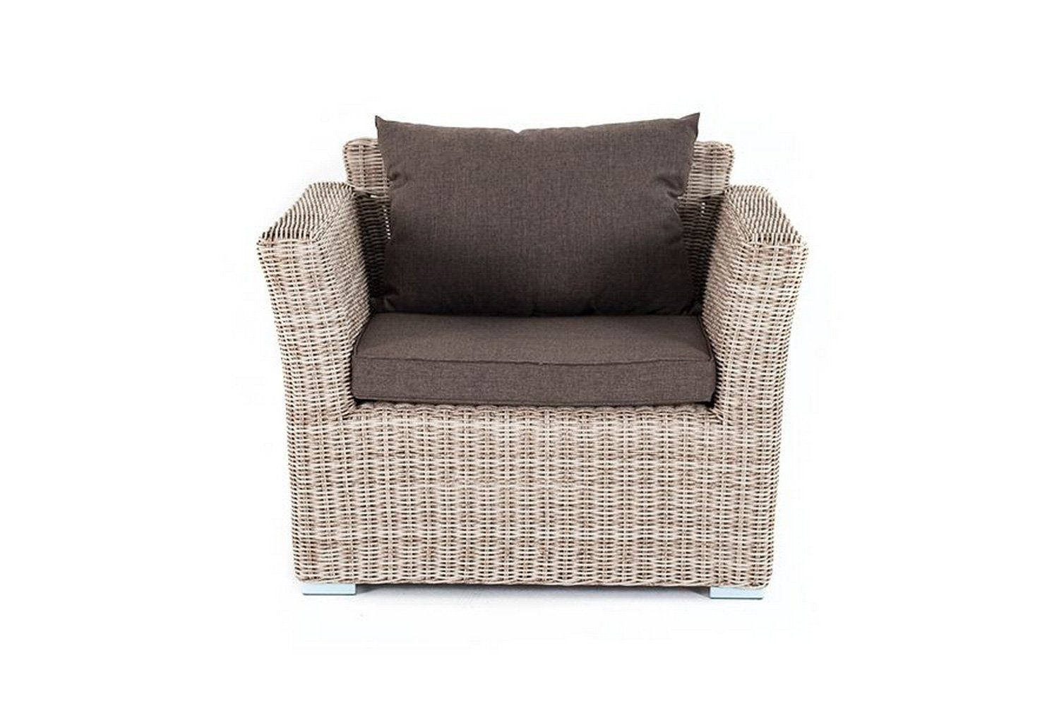 Кресло из коллекции Капучино – это идеальное решение для создания уютного уголка отдыха. Его небольшая квадратная форма позволяет гармонично вписать его в любой интерьер. Кресло подходит для использования как в доме, так и на улице – его материалы справятся с любыми погодными условиями.