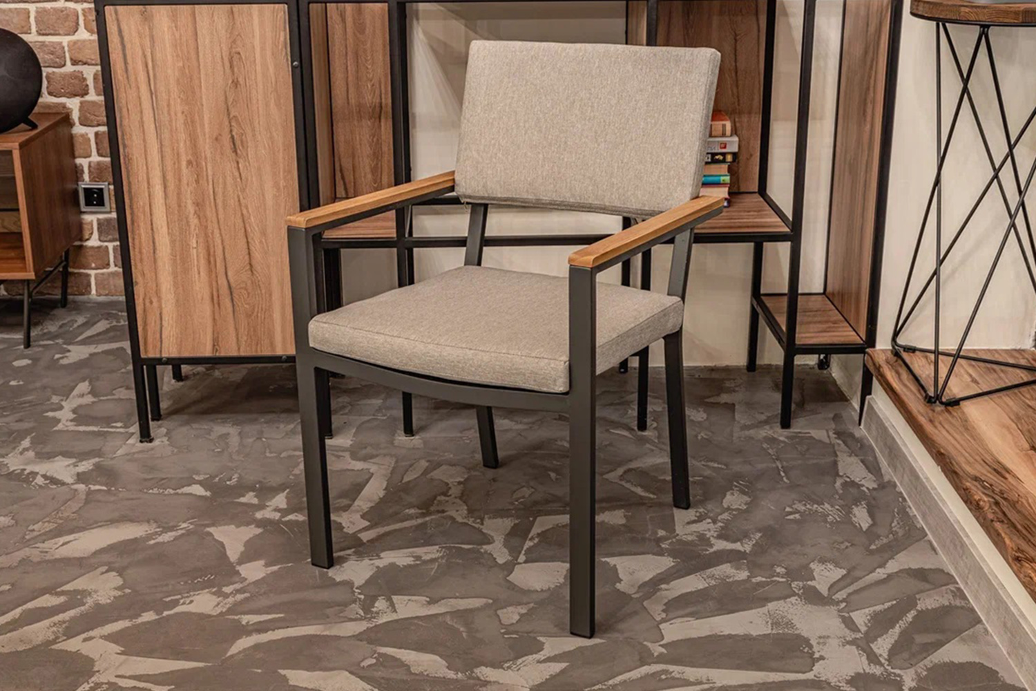 Стул из коллекции Оскар за счет своего универсального дизайна и материалов, из которого он изготовлен, может быть использован как на улице, так и внутри квартиры. Стул состоит из алюминиевого каркаса черного цвета, подлокотники изготовлены из массива тика (цвет дерева сохранен). Оба материала выдерживают перепады температур от -30 до +50 градусов, не портятся под воздействием воды и солнца.