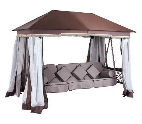 • Тенты, благодаря которым как полностью, так и наполовину можно закрыть качели;
