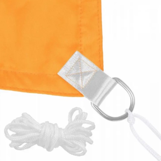 У нас вы можете купить тент-парус теневой для дома, сада и туризма Spring 7 х 5 х 5 м. Выполнен данный тент в оранжевом цвете, произведён он в России. Изготовлен он из акриловой ткани с плотностью 160 г, ткань имеет гидрофобную пропитку, а также защиту от ультрафиолетовых лучей. По краям тента располагаются кольца из нержавеющей стали, в комплекте находится монтажный шнур. Данный тент имеет треугольную форму, он создаёт затемнение, уровень которого достигает 90%.